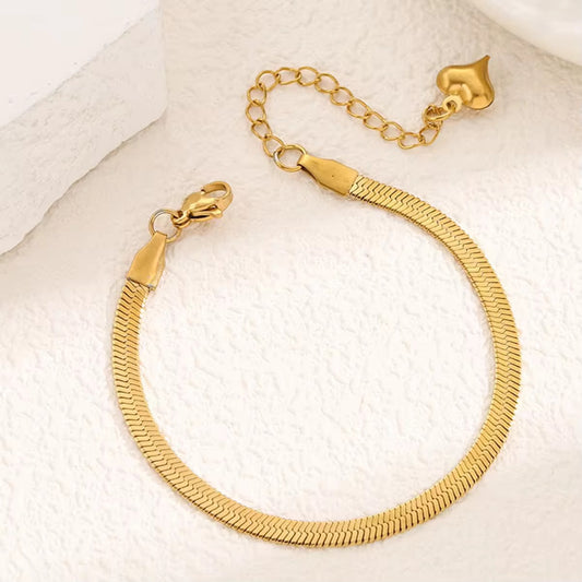 Dainty Flat Chain Bracelet with Heart Charm