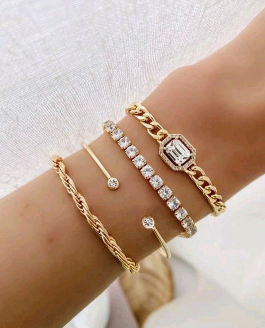 Chic & Cheeky: 4-Piece Gold Bracelet Set